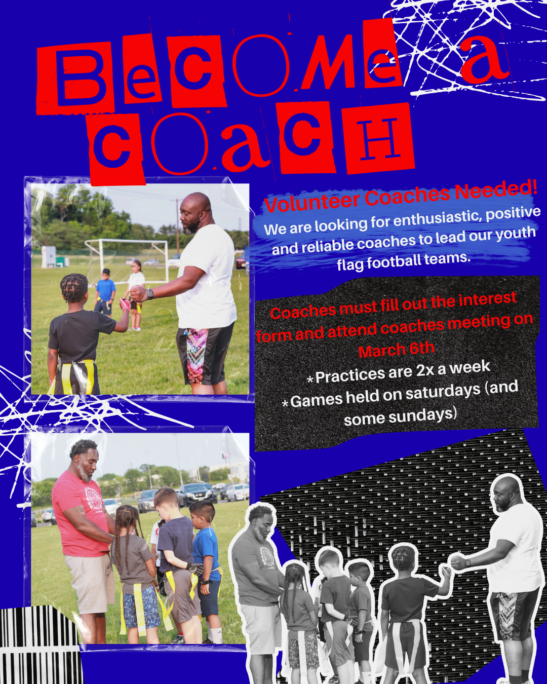 We are looking for enthusiastic, positive and reliable coaches to lead our youth flag football teams.