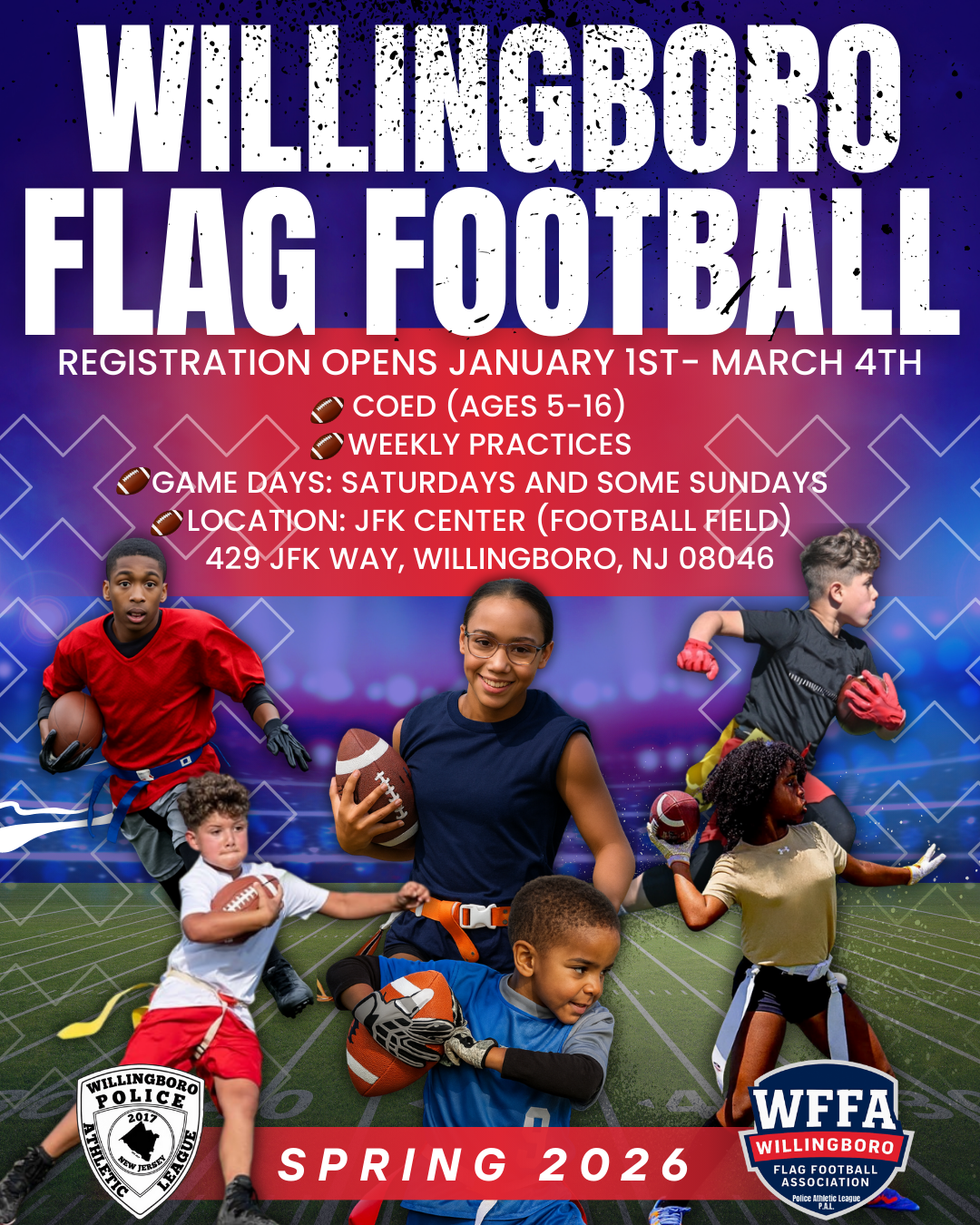 The Willingboro Flag Football Association (WFFA) is proud to offer a Student Internship & Scholarship Program for Willingboro resident high school seniors interested in sports management, community leadership, media, and marketing.